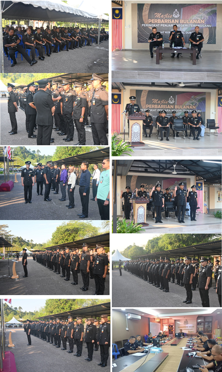 7 Oktober 2025 (Selasa) – Majlis Perhimpunan Setia, Majlis Dialog Bulanan dan Mesyuarat Pengurusan Penjara Peringkat Negeri Terengganu Bilangan 4 Tahun 2025 telah diadakan dengan penuh istiadat dan semangat kesetiaan warga Jabatan Penjara Malaysia.