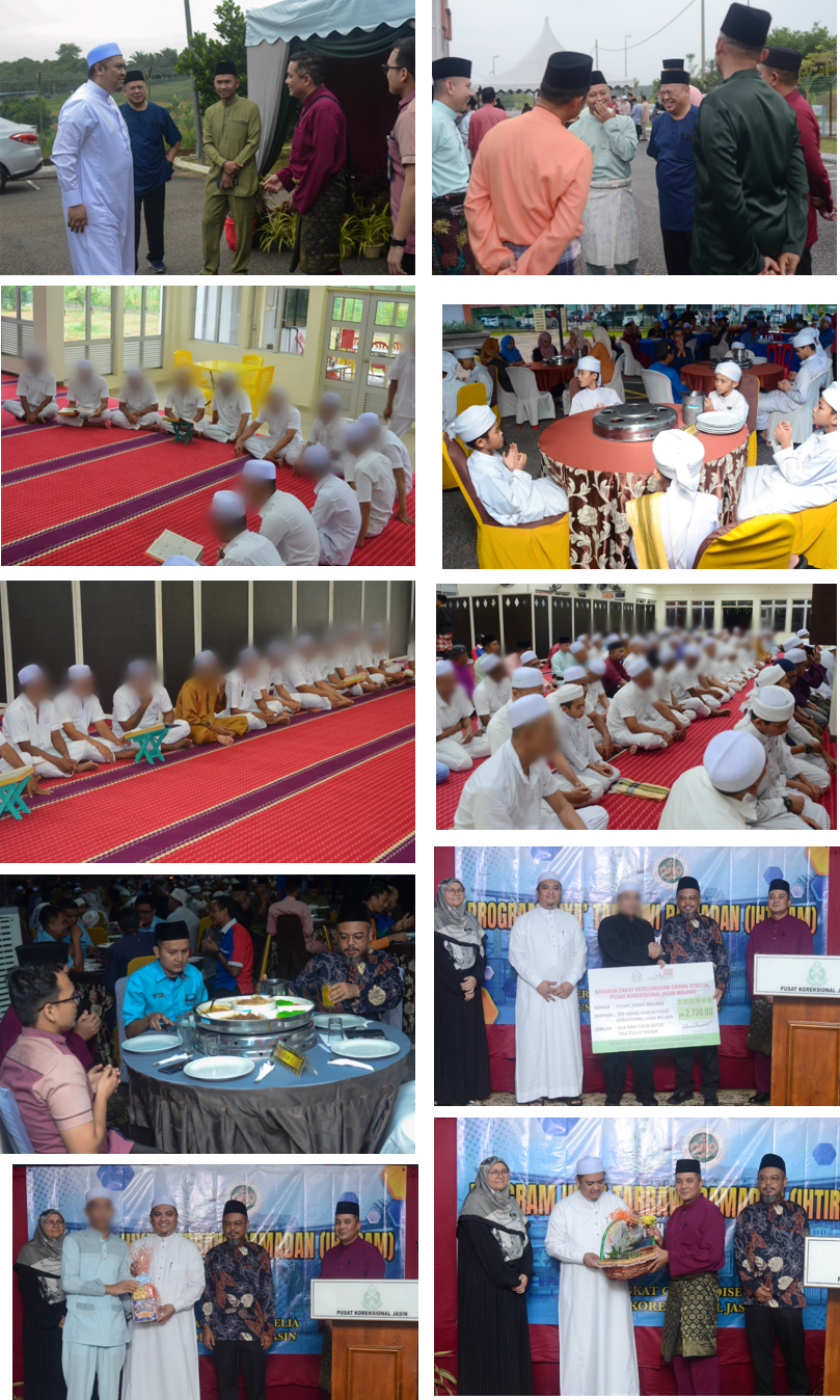 19 Mac 2025 bersamaan 18 Ramadan 1446H (Rabu), telah berlangsung Program Ihya’ Tarbawi Ramadan (IhTiRam) di Surau An Nur, Pusat Koreksional Jasin. Atur cara program telah bermula seawal jam 4.30 petang dengan Solat Asar berjemaah bersama Orang DiSelia. Seterusnya seramai 50 peserta tadarus dalam kalangan penghuni telah memulakan bacaan tadarus Al-Quran bermula dari 1 Ramadan, telah mengkhatamkan bacaan Al-Quran pada petang tersebut. Acara kemuncak Program IhTiRam Majlis Agama Islam Melaka ialah perasmian oleh Tuan Haji Mohd Hairulamin bin Mohd Sis, Pengurus Baitulmal, Majlis Agama Islam Melaka dan majlis penyerahan Mock Cheque Zakat Fitrah bagi 390 Orang DiSelia berjumlah RM2,730.00 telah diserahkan oleh wakil penghuni kepada Pengarah Operasi Zakat Melaka, Encik Noorzakry bin Nor Jamal. Sebagai tanda penghargaan, peserta tadarus ini dipilih untuk bersama-sama dengan pihak Majlis Agama Islam Melaka bagi program Iftar Jamaie‘ dan menunaikan Solat Fardhu Maghrib bersama-sama. Turut Hadir menjayakan program PKP Shaharudin bin Ahmad, Pengarah Pusat Koreksional Jasin, Puan Zuraini Bibi binti Mohamed Yusoff, Penolong Setiausaha, Bahagian Pembangunan Insan MAIM, PP Mohd Rehan bin Khamis, Timbalan Pengarah Pusat Koreksional Jasin, ketua-ketua dan wakil institusi Penjara Negeri Melaka dan semua warga kerja Pusat Koreksional Jasin. Pusat Koreksional Jasin juga menjemput pelajar Tahfiz Madrasah Oli seramai 17 orang bersama guru madrashah bagi bersama-sama menjayakan program tersebut. Penyelaras program ialah Ustaz Abdul Lathif bin Ismail, Pegawai Agama Islam di Pusat Koreksional Jasin. Pengurusan Pusat Koreksional Jasin mengucapkan setinggi-tinggi penghargaan kepada MAIM sebagai penaja utama majlis dan kepada semua warga Pusat Koreksional Jasin yang terlibat dalam menjayakan program yang bermakna ini.