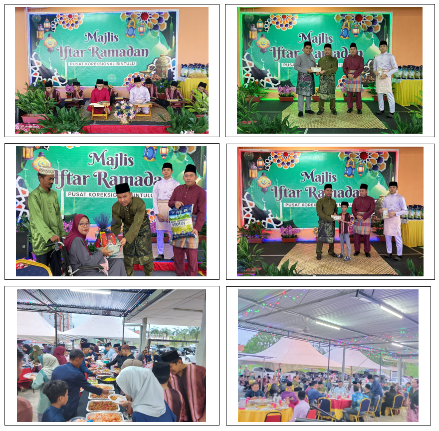 Pada 25 Mac 2025 (Selasa) bersamaan 26 Ramadan 1446H telah diadakan Majlis Iftar Ramadan peringkat kakitangan dan PERSIAP Pusat Koreksional Bintulu/ PPK/ PPA. Majlis dimulakan dengan Khatam Al-Quran untuk anak-anak kakitangan yang diketuai oleh Ustaz Wan Yusuf bin Wan Mumin. Aturcara majlis diteruskan dengan penyampaian saguhati kepada Imam, Bilal dan Marbot Surau At-Taqwa diikuti penyampaian saguhati kepada anak-anak kakitangan yang telah mengikuti tadarus Al-Quran sepanjang bulan Ramadan tahun ini. Majlis turut mengambil kesempatan ini menyampaikan sumbangan kepada beberapa orang golongan asnaf di bahagian Bintulu dan gimik simbolik sumbangan raya kepada kakitangan yang telah disampaikan oleh PKP Zakaria bin Mat Jusoh, Pengarah Pusat Koreksional Bintulu/ PPK/ PPA. Seusai berbuka puasa, telah diadakan solat magrib, isya dan tarawih berjemaah di Surau At-Taqwa. Majlis yang diadakan pada setiap kali bulan Ramadan ini adalah untuk mengeratkan hubungan silaturrahim sesama warga kerja institusi dan PERSIAP disamping dapat menghayati erti, nilai dan ibrah yang terkandung dalam bulan Ramadan.