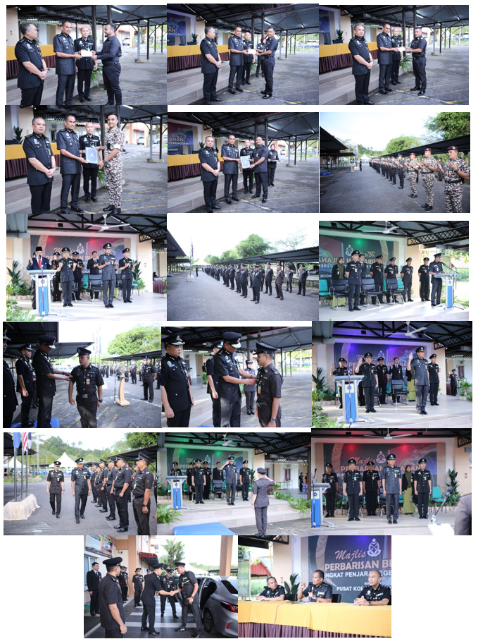 Aturcara majlis dimulakan dengan nyanyian Lagu Negaraku, Lagu Bakti Setia dan Bacaan Ikrar yang dipimpin oleh Ketua Perbarisan, TPP Mohd Sobrie bin Mohd Zuki. Pada majlis tersebut, Pengarah Penjara Negeri Terengganu, PKK Haji Mohd Nasir bin Yusof telah menyampaikan amanat berkaitan dasar dan hala tuju jabatan dan kepentingan penggunaan Artificial Inteligence (AI) dikalangan kakitangan. Majlis diteruskan dengan acara Pemakaian Pangkat yang melibatkan dua orang penerima masing-masing dari institusi Pusat Koreksional Dungun dan Penjara Marang.