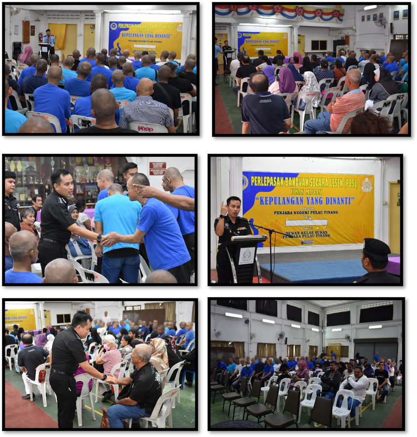 PULAU PINANG | 03 JUN 2025, Majlis Pelepasan Banduan Secara Lesen (PBSL) Ihsan Madani Peringkat Penjara Pulau Pinang telah dilaksanakan di Dewan Kelab Sukan, Penjara Pulau Pinang. Dengan tema “Kepulangan Yang Dinanti”. Majlis pelepasan ini melibatkan 42 Orang Bebas Berlesen (OBB) yang akan diberi peluang kedua untuk menjalani pemulihan di luar tembok Penjara sempena Hari Raya Aidiladha dengan 16 Orang Bebas Berlesen (OBB) akan menyertai Program Corporate Smart Internship (CSI), 21 Orang Bebas Berlesen (OBB) akan kembali ke pangkuan keluarga dan 5 Orang Bebas Berlesen (OBB) akan ke Rumah Perantaraan (RP). Ucapan perasmian telah disempurnakan oleh YDH PKP Zool Fadli Bin Ismail, Pengarah Penjara Pulau Pinang. Turut hadir Timbalan Penjara Pulau Pinang, Pegawai-Pegawai Parol dan PBSL, Majikan syarikat yang terlibat dan keluarga.