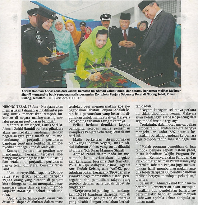 Utusan Malaysia : Kos Tanggung 11,509 Banduan Asing RM402,815 Sehari