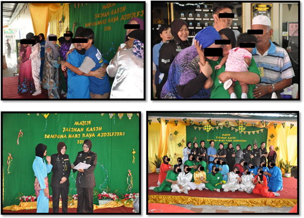 Pada 29 Julai 2016 (Jumaat), bertempat di Family Hall, Penjara Wanita Kota Kinabalu telah mengadakan Program Jalinan Kasih Sempena Sambutan Hari Raya Aidilfitri Peringkat Penghuni Penjara Wanita Kota Kinabalu. Majlis ini telah disempurnakan oleh TPP Fauziah bt Hussain, Timbalan Pengarah Penjara Wanita Kota Kinabalu bersama Pegawai-pegawai Kanan dan kakitangan. Program ini bertujuan untuk memberi peluang kepada penghuni untuk meraikan Hari Raya Aidilfitri bersama-sama keluarga tersayang. Selain itu majlis juga diserikan lagi dengan kehadiran Timbalan Pengarah Penjara Negeri Sabah, PKK Nora Binti Musa serta aktiviti pertandingan mengayam ketupat dan Kad Ucapan Hari Raya paling Kreatif berjaya memeriahkan lagi suasana majlis. Seramai 09 Banduanita dan 02 Juvana yang layak dan terpilih untuk menyertai program ini bersama-sama 32 orang keluarga yang hadir.