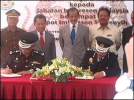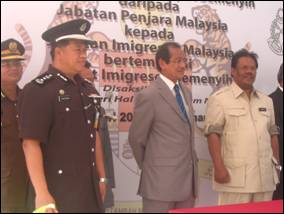 KAJANG 15 Jan. - KPJ Wan Mohamad Nazarie b. Wan Mahmood, Timbalan Ketua Pengarah Penjara (Pengurusan) telah menghadiri Majlis Serah Menyerah Depot Tahanan PATI Semenyih sebagai wakil pengurusan tertinggi Jabatan Penjara Malaysia bagi majlis serah menyerah ini. Dengan penyerahan ini, maka dengan rasminya Depot Tahanan PATI Semenyih ini diserah semula kepada Jabatan Imegresen selepas lebih kurang 3 tahun 8 bulan, iaitu bermula pada 20 Mei 2004 ianya di bawah pentadbiran Jabatan Penjara Malaysia. Penyerahan ini dilakukan secara berperingkat di seluruh negara sehingga bulan Mac 2008 ini. Pada waktu yang sama juga, di Pekan Nenas Johor, majlis yang sama juga turut berlangsung bagi penyerah Depot Tahanan PATI Pekan Nenas antara Komandan Depot dengan Pengarah Imigresen Negeri Johor. Sudah pasti dengan penyerahan semula depot-depot tahanan PATI kepada Jabatan Imegresen akan memberikan peluang dan ruang masa kepada Jabatan Penjara Malaysia untuk menumpukan perhatian sepenuhnya terhadap pelaksanaan sistem parol iaitu satu sistem dan kefungsian baru Jabatan Penjara Malaysia yang dijangkakan mula dilaksanakan tidak berapa lama lagi.