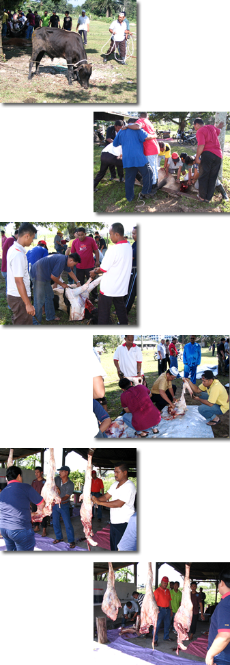 Kajang, 27 November 2009 - Sempena dengan sambutan Hari Raya Aidil Adha pada tahun ini Jabatan Penjara Malaysia telah menganjurkan majlis ibadah korban di Masjid Jabatan Penjara Malaysia. Seramai 14 orang banduan pra bebas turut serta melaksanakan ibadah tersebut dengan berkongsi hasil pendapatan mereka membeli dua ekor lembu. "Saya rasa bersyukur kerana pada tahun ini dapat turut serta melakukan ibadah korban walaupun sedang menjalani hukuman" kata salah seorang banduan Penjara Kajang. Manakala seorang lagi peserta ibadah korban tersebut pula berkata, "harapan saya semoga ibadah ini dapat menebus kesalahan saya masa silam". Y.B. Menteri Dalam Negeri turut menyumbang sebanyak lima ekor lembu di majlis ibadah korban tersebut. Beliau diwakili oleh Pegawai Khasnya, Dato' Markiman Kobiran. "Pelaksanaan ibadah korban ini membuktikan bahawa ia merupakan satu simbolik pengorbanan yang tidak membataskan apa juga status seseorang itu", katanya. "Pelaksanaan ibadah korban ini juga dapat mengeratkan silaturrahim di antara wargakerja, penghuni dan penduduk di sekitar masjid ini", katanya lagi. Selain daripada itu, sebanyak lima ekor lembu juga turut disumbangkan oleh Qariah di sekitar masjid dan 2 ekor lagi oleh Jabatan Agama Islam Selangor. Jabatan Penjara Malaysia merakamkan setinggi-tinggi penghargaan dan ucapan terima kasih di atas sumbangan yang telah diberikan oleh semua pihak bagi menjayakan majlis ibadah korban tersebut dan semoga ia mendapat keberkatan daripada Allah SWT.