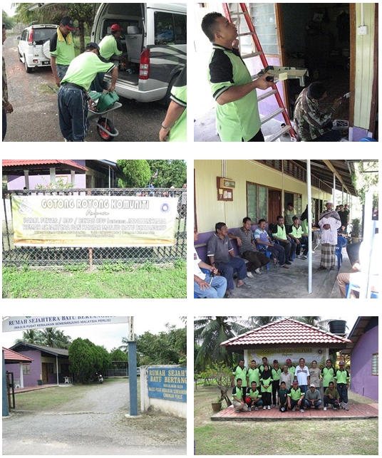 Pada 15/12/2010 yang lalu, Pejabat Parol Negeri Perlis telah menganjurkan satu program gotong-royong komuniti yang diadakan di Rumah Sejahtera Batu Bertangkup, Chuping, Perlis. Program tersebut diadakan bertujuan untuk membersihkan kawasan Rumah Sejahtera serta mengecat semula dinding rumah tersebut. Penglibatan ODP dan bekas ODP dalam program ini dapat menyesuaikan diri mereka dalam masyarakat serta dapat mendedahkan tugas Parol dan Jabatan Penjara secara amnya kepada masyarakat setempat. ![]() |