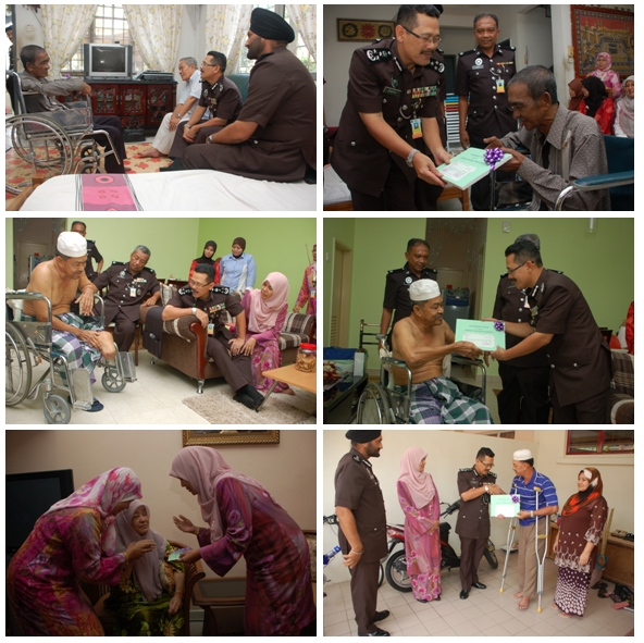 Bersempena dengan lawatan kerja Ketua Pengarah Penjara Malaysia, Y. Bhg. Datuk Wira Hj. Zulkifli bin Hj. Omar ke Penjara Sungai Buloh, Selangor pada 14 Oktober 2010 lalu, beliau telah meluangkan masa mengadakan lawatan ihsan menziarah empat orang bekas kakitangan Penjara Sungai Buloh yang telah bersara dan sedang uzur yang menetap di sekitar kawasan Sungai Buloh. Antaranya ialah Penguasa Penjara Amir bin Hj. Nawawi serta isteri dan Koperal Ramli bin Daud yang mengidap penyakit diabetes. Dalam lawatan tersebut juga, Y. Bhg. Datuk Wira telah sudi menyampaikan cek kepada pesara-pesara berkenaan yang disumbangkan oleh Kumpulan Wang Hadiah Pegawai Penjara (KWHPP) dan Kelab Sukan dan Kebajikan Penjara Sungai Buloh bagi membantu meringankan beban mereka sekeluarga dalam menjalani kehidupan seharian. Turut serta dalam lawatan tersebut adalah Pengerusi PERSIAP, Y. Bhg. Datin Wira Hjh. Noraini binti Hj. Man, Pengarah Penjara Sungai Buloh, TKPj. Narender Singh Chand Singh, pegawai-pegawai kanan serta ahli-ahli PERSIAP penjara berkenaan. ![]() |