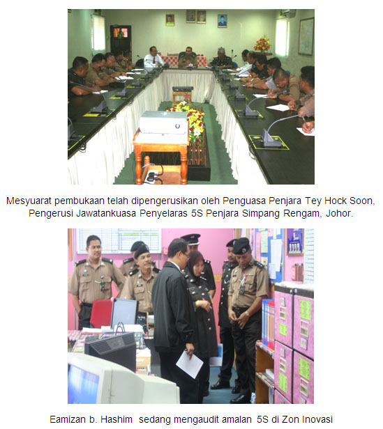3 Ogos 2010 (Selasa) Penjara Simpang Rengam, Johor telah diaudit bagi tujuan Pensijilan Amalan Persekitaran Berkualiti (QE) 5S oleh pihak Malaysian Productiviti Corporation (MPC), Johor yang diwakili oleh Eamizan b. Hashim Mesyuarat pembukaan telah dipengerusikan oleh Penguasa Penjara Tey Hock Soon, Pengerusi Jawatankuasa Penyelaras 5S Penjara Simpang Rengam, Johor. Pengauditan telah dilakukan di 8 Zon iaitu Zon Proaktif, Zon Intergriti, Zon Kondusif, Zon Drastik, Zon Komited, Zon Kreatif, Zon Inovasi dan Zon Proaktif.
