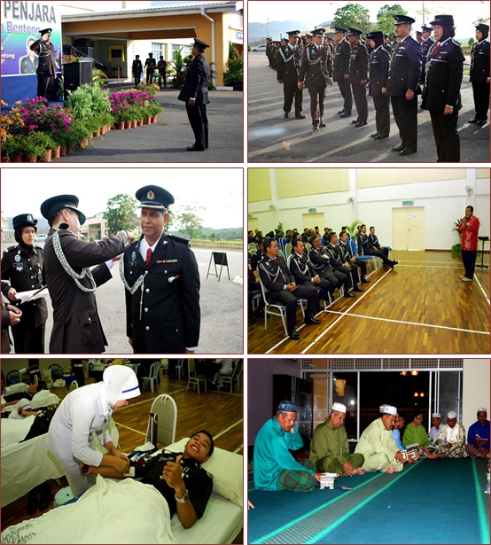3 November 2011 ( Khamis) Sambutan Hari Jabatan Penjara 2011 Peringkat Penjara Bentong, Pahang telah diadakan di Dataran Pentadbiran , Kompleks Penjara Bentong pada 3 November 2011 dan telah di sempurnakan oleh PP Teyun Thian Eim, Timbalan Pengarah, Penjara Bentong. Majlis sambutan bermula jam 8.15 pagi di dahului dengan nyanyian lagu Negaraku, Bakti Setia dan Kualiti Teras Kejayaan diikuti dengan bacaan doa dan Ikrar Jabatan. PP Teyun Thian Eim kemudiannya membacakan teks perutusan Komisioner Jeneral Penjara, Y.Bhg. Datuk Wira Hj. Zulkifli bin Omar sempena Hari Jabatan Penjara 2011. PP Teyun juga telah sudi menyempurnakan pemakaian pangkat kepada 4 orang pegawai kanan yang telah disahkan kedalam perjawatan dan 5 pegawai yang dinaikan ke pangkat Koperal Penjara. Beliau juga turut menyempurnakan penganugerahan Pingat-Pingat dan Sijil-Sijil kepada 57 orang penerima yang layak yang terdiri daripada :