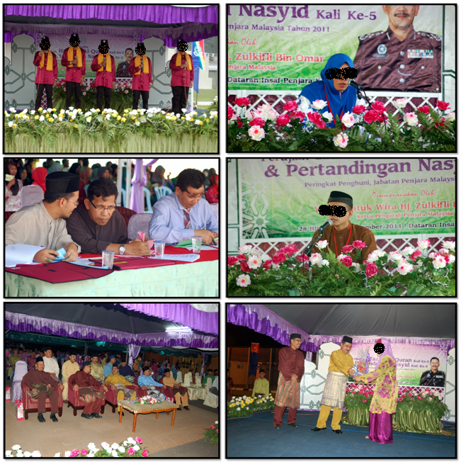 Jumaat,30 September 2011-Dataran Insaf Penjara Kluang menjadi tumpuan peserta-peserta dari seluruh institusi penjara untuk menyertai Majlis Perujian Hafazan Al-Quran Kali Ke-3 Dan Pertandingan Nasyid Kali Ke-5 Peringkat Penghuni Jabatan Penjara Malaysia Tahun 2011. Majlis yang berlangsung selama 3 hari bermula Rabu 28 September 2011 dan berakhir pada Jumaat 30 September 2011 telah menghimpunkan 62 peserta lelaki, 23 peserta wanita dan 11 kumpulan nasyid yang terdiri dari penghuni pelbagai institusi penjara seluruh Malaysia. Program yang diadakan secara tahunan adalah salah satu program pemulihan Seksyen Pemulihan Rawatan Dan Pemulihan telah dikelolakan oleh Penjara Kluang. Barisan juri pula terdiri daripada pegawai agama pelbagai institusi penjara yang diketuai Ustaz Ainuddin Bin Hj Dolhakim, Ketua Unit Agama IPPM. Johan bagi kategori Perujian Hafazan Lelaki Tahap 1 dan 3 menjadi milik Penjara Pokok Sena, manakala Tahap 2 pula jatuh kepada Penjara Tapah. Bagi kategori Perujian Hafazan Wanita Tahap 2 serta 3 dimenangi oleh institusi Penjara Wanita Kajang dan Tahap 1 menjadi milik Sekolah Henry Gurney Melaka. Wakil dari Sabah iaitu Penjara Tawau berjaya merangkul johan kategori Pertandingan Nasyid dengan mengalahkan Sekolah Henry Gurney dan Penjara Kluang yang mendapat tempat ke-2 dan ke-3. Majlis perasmian telah disempurnakan oleh KPj Jamaluddin Bin Saad, Pengarah Bahagian Pengurusan Banduan Jabatan Penjara Malaysia. Majlis turut diceriakan dengan kehadiran PKK Roslan Bin Hj Mohamed, Pengarah Penjara Kluang dan pengarah-pengarah institusi Jabatan Penjara Malaysia.