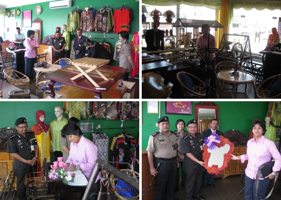Pada 29 Mac 2011, jam 3.30 petang , Galeri Produk Penjara di Alor Setar telah menerima kunjungan Yang Teramat Mulia Tunku Panglima Besar, Dato' Seri Tunku Puteri Intan Safinaz binti Sultan Haji Abdul Halim Mu'adzam Shah. YTM Tunku Puteri telah meluangkan masa selama lebih kurang 45 minit melihat produk-produk yang dipamerkan di Galeri tersebut. Ketibaan YTM Tunku Puteri disambut oleh PKK Hj. Ahmad Faudzi bin Awang, Pengarah Penjara Pokok Sena dan PKP Kamarudzaman bin Hj. Mamat, Pengarah Penjara Alor Setar serta beberapa orang pegawai penjara. YTM Tunku Puteri telah membuat tempahan beberapa produk rotan yang dipamerkan di Galeri tersebut. Jabatan Penjara amat ber bangga dengan kunjungan YTM Tunku Puteri , ini menunjukkan keprihatinan YTM Tunku Puteri kepada usaha-usaha Jabatan Penjara Malaysia dalam melaksanakan program Pemulihan yang berkesan kepada penghuni penjara. ![]() |