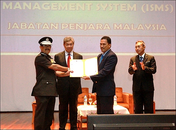 9 Julai 2013; Jabatan Penjara Malaysia telah dianugerahkan pensijilan Information Security Management System (ISMS) daripada SIRIM pada majlis Perhimpunan Bulanan Kementerian Dalam Negeri di Auditorium Blok D8, Putrajaya. Anugerah disampaikan oleh Encik Zakaria bin Mohd Nor, Ketua Seksyen Elektrikal dan Elektronik SIRIM yang turut disaksikan oleh YB Dato' Seri Dr. Ahmad Zahid bin Hamidi, Menteri Kementerian Dalam Negeri. Skop ISMS Jabatan Penjara Malaysia merangkumi Pengurusan Pusat Data Jabatan Penjara Malaysia bagi pelaksanaan Sistem Maklumat Pengurusan Pesalah (SMPP) yang melibatkan aktiviti pengoperasian dan penyelenggaraan ini berkuatkuasa dari 30 Mei 2013 hingga 29 Mei 2016.