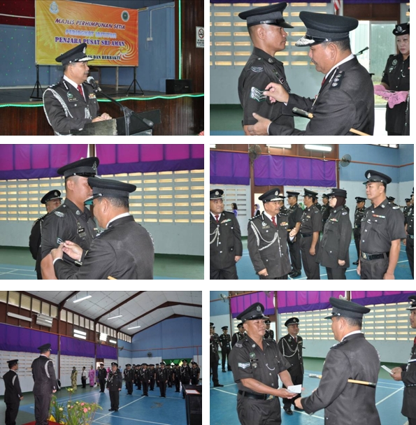 4hb Februari 2015 - Institusi Penjara Pusat Sri Aman telah mengadakan Perhimpunan Setia dan Majlis Pemakaian Pangkat Time-Base Berasaskan Kecemerlangan (TBBK) Sarjan dan Koperal. Seramai tiga orang menerima kenaikan pangkat Sarjan dan empat orang menerima kenaikan pangkat Koperal pada majlis tersebut. Turut diadakan penyampaian sumbangan Tabung Kebajikan Penjara Sarawak kepada seramai empat orang kakitangan yang telah disempurnakan oleh PKP Ong Chciang A/L Ong Boon Yeiu Pengarah Penjara Pusat Sri Aman. |