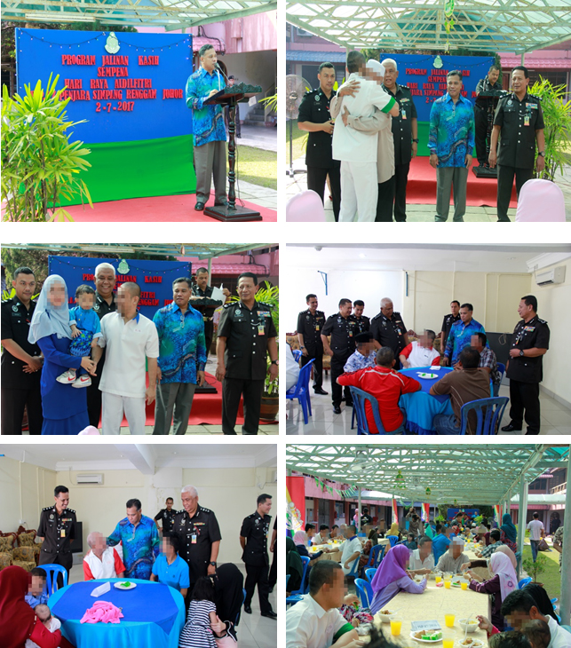 Pada 02 Julai 2017 ( Ahad ) Penjara Simpang Renggam Johor telah mengadakan Program Jalinan Kasih Hari Raya Aidilfitri di hadapan bilik kawalan Penjara Simpang Renggam. Seramai 8 orang tahanan LLPK , 4 orang tahanan POCA  , 5 orang Banduan Akhir dan 8 orang banduan terlibat dengan program jalinan kasih Hari Raya Aidilfitri. Majlis dirasmikan oleh KP Haji Abd  Wahab Bin Kassim Pengarah Penjara Negeri Johor. Turut hadir TKP Ramli Bin Osman Pengarah Penjara Simpang Renggam , PKP Azman Bin Mohd Ali Timbalan Pengarah , Pegawai – pegawai kanan dan pegawai pemulihan institusi.