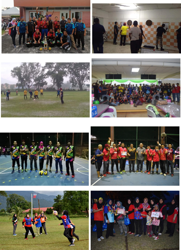 1. Kejohanan Sepak Takraw - Platun Blok Lestari 2. Kejohanan Dart - Platun Kerja Luar 3. Kejohanan Futsal Padang - Platun Blok Fajar 4. Kejohanan Tenpin Bowling - Platun Pegawai Kanan 5. Kejohanan Bola Tampar - Platun Keseluruhan Blok 6. Kejohanan Bola Jaring - Platun Wanita. Majlis berjalan dengan lancar dan diharap dapat memupuk semagat kerjasama bertugas dalam pasukan kepada semua yang terlibat. ![]() |