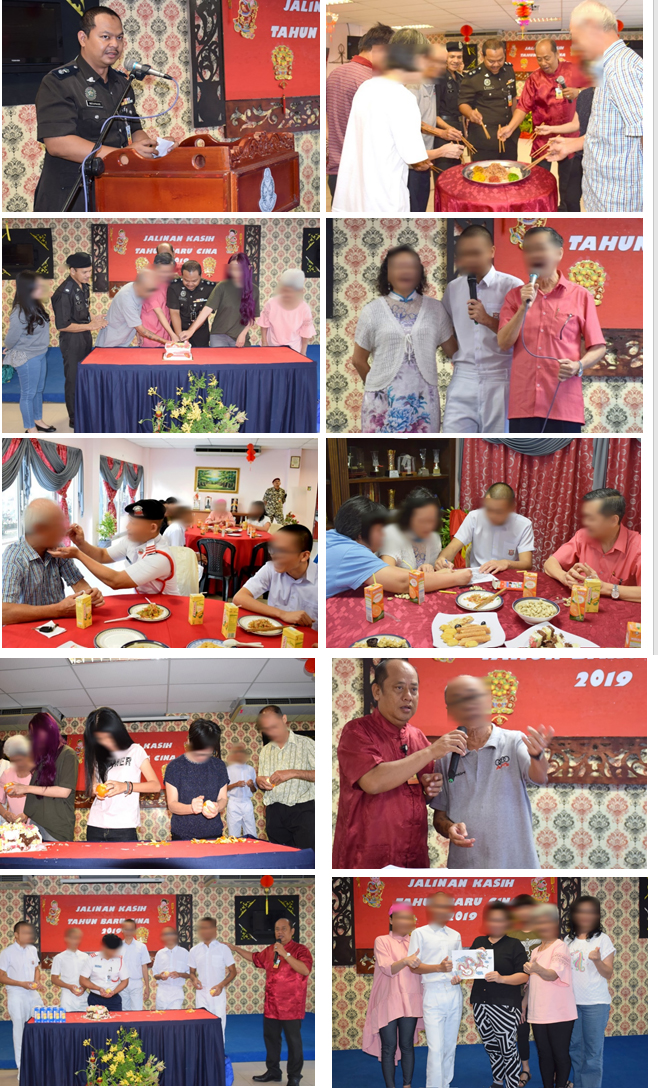 Pada 07 Februari 2019 (Khamis) bertempat di Dewan Seroja, Sekolah Henry Gurney Telok Mas Melaka telah diadakan Program Jalinan Kasih Sempena Tahun Baru Cina. Seramai sepuluh keluarga penghuni telah hadir menyertai program ini. Acara dimulakan dengan menggaul Yee Sang, Acara Memotong Kek Pertandingan Mewarna bersama ahli keluarga dan Mengupas Buah Limau. PP Ridwan Bin Saghil @ Yusof, Timbalan Pengarah SHG Melaka serta pegawai kanan telah meluangkan masa beramah mesra bersama keluarga penghuni tersebut.