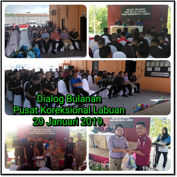 Pada 29 Januari 2019, telah berlangsung Majlis Dialog Bulanan bagi Bulan Januari 2019 bertempat di Perkarangan Garaj Kenderaan Jabatan, Pusat Koreksional Labuan. Majlis tersebut telah dipengerusikan oleh Penolong Komisioner Penjara, Abd Rauf bin Lang Pasih, Pengarah Pusat Koreksional Labuan dan turut dihadiri oleh Penguasa Penjara, Jaafar bin Timbang, Timbalan Pengarah Pusat Koreksional Labuan, Timbalan Penguasa Penjara, Peter Anak Rex Barthy, Ketua Bahagian Keselamatan dan Inteligen Pusat Koreksional Labuan serta pegawai-pegawai dan kakitangan Pusat Koreksional Labuan. Majlis tersebut turut diisi dengan Acara Penyerahan Sumbangan daripada Kelab Kebajikan dan Rekreasi Pusat Koreksional Labuan kepada pegawai yang baru mendirikan rumah tangga serta kehilangan insan tersayang yang telah disampaikan oleh Penolong Komisioner Penjara, Abd Rauf bin Lang Pasih, Pengarah Pusat Koreksional Labuan. Selain itu turut dimuatkan juga acara sambutan Hari Lahir bagi pegawai dan kakitangan yang lahir pada bulan Januari serta cabutan bertuah kepada kakitangan yang hadir.