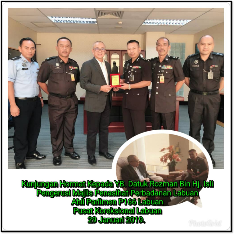 Pada 29 Januari 2019 telah diadakan Kunjungan Hormat kepada Yang Berbahagia, Datuk Rozman bin Haji Isli, Pengerusi Majlis Penasihat Perbadanan Labuan merangkap Ahli Parlimen P166 Labuan. Kunjungan tersebut diketuai oleh Penolong Komisioner Penjara, Abd Rauf bin Lang Pasih, Pengarah Penjara Labuan dan turut disertai oleh beberapa orang pegawai iaitu Penguasa Penjara, Jaafar bin Timbang, Timbalan Pengarah Pusat Koreksional Labuan, dan beberapa orang pegawai kanan institusi. Kunjungan tersebut bertujuan bagi mengeratkan hubungan antara Jabatan Penjara Malaysia khususnya Pusat Koreksional Labuan dengan pemimpin masyarakat di Wilayah Persekutuan Labuan disamping membincangkan program-program bersesuaian yang boleh dilaksanakan kepada penghuni dan kakitangan Pusat Koreksional Labuan dengan kerjasama daripada Perbadanan Labuan.