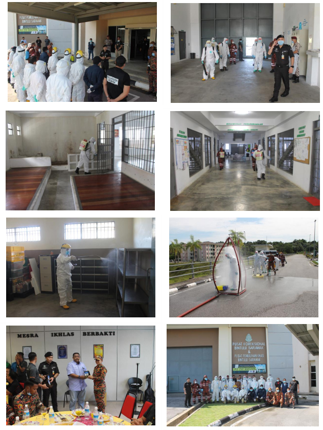 Pada 19 April 2020 (Ahad), Pusat Koreksional Bintulu telah menjalankan operasi sanitasi di seluruh kawasan institusi dalam usaha membasmi dan mengekang penularan wabak COVID-19. Seramai 31 orang telah terlibat dalam operasi ini yang terdiri daripada 14 anggota Bomba dan Penyelamat Malaysia Bahagian Bintulu, 6 orang daripada Lembaga Kemajuan Bintulu (BDA) dan 6 orang daripada Kementerian Kesihatan Malaysia (KKM) Bahagian Bintulu yang diketuai oleh Komander Operasi PgB Gawai John. Operasi ini telah dibahagikan kepada 3 sektor iaitu sektor pertama pihak KKM menggunakan mist blower dan sektor kedua dan ketiga pihak bomba dan BDA menggunakan spray manualdengan menggunakan kaedah penyemburan campuran air dan peluntur dengan nisbah sukatan 1:9. Operasi telah dimulakan pada jam 9.00 pagi dan berakhir pada jam 11.30 pagi.