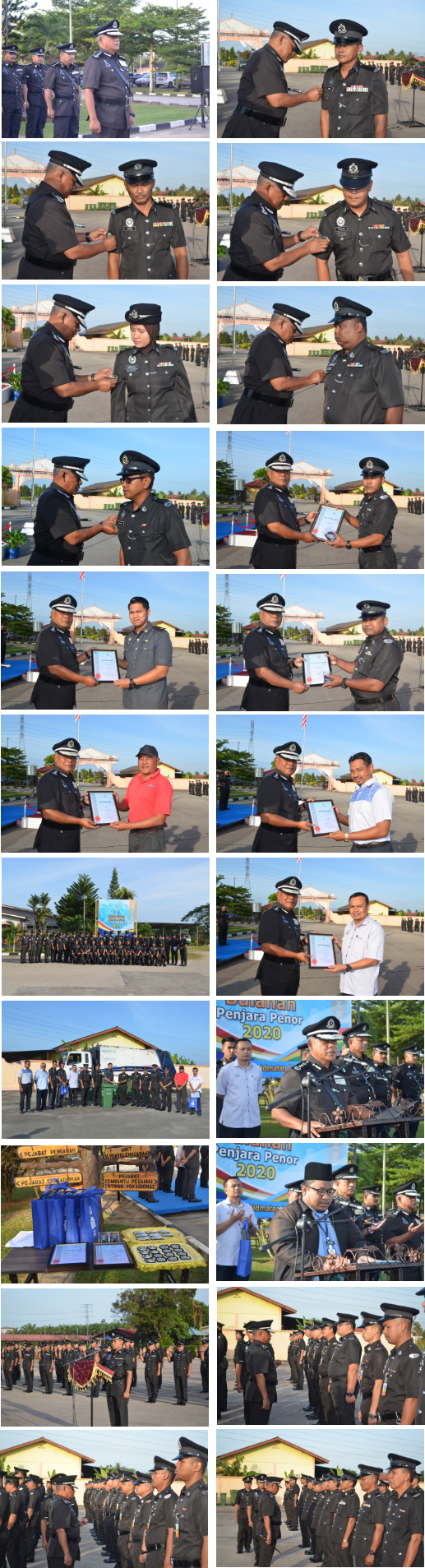 Pada 14 Januari 2020 ( Selasa ), telah diadakan Majlis Perbarisan Bulanan Penjara Penor bagi Bulan Januari 2020. Seramai ( 24 ) orang anggota telah dinaikkan pangkat ke jawatan Pegawai Penjara Gred KA 20, Pegawai Penjara Gred KA 22 dan Pegawai Penjara Gred KA 24 serta ( 02 ) orang anggota telah dipilih untuk menerima Anugerah Personaliti Bulanan ( November & Disember 2019 ).Majlis telah disempurnakan oleh YH. Komisioner Dato? Ab. Basir bin Mohamad, Pengarah Penjara Negeri Pahang. Turut hadir ialah Penolong Kanan Komisioner Dato? Abu Hasan bin Hussain, Pengarah Penjara Penor, Penolong Kanan Komisioner Charin Promwichit, Pegawai Parol & Perkhidmatan Komuniti Negeri Pahang merangkap Timbalan Pengarah Penjara Negeri Pahang, Penguasa Ahmad Supian bin Jaafar, Timbalan Pengarah Penjara Penor, Penguasa Mohd Huzaimi bin Hanafi, Ketua Bahagian Parol & Perkhidmatan Komuniti Negeri Pahang dan Penolong Penguasa Mohd Rani bin Zakaria, Komandan Pusat Reintegrasi Penghuni, kem Batu 10, Kuantan. Perbarisan pada kali ini diketuai oleh Timbalan Penguasa Muhammad Zulfaqar bin Abas. Atur cara majlis turut diselitkan dengan penyerahan tong sampah untuk kegunaan harian di Penjara Penor oleh pihak Alam Flora Sdn. Bhd. serta majlis penyampian sijil dan cenderamata kepada wakil daripada Alam Flora Sdn. Bhd., Majlis Perbandaran Kuantan ( MPK ), Solid Waste Corporatin ( SWCorp ) dan MYM Services Sdn. Bhd.