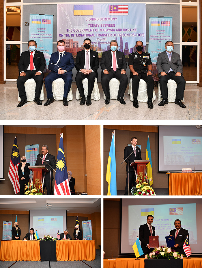 Majlis Pemeteraian Treaty on International Transfer of Prisoners (ITOP) antara Kerajaan Malaysia dan Ukraine telah berlangsung pada 12 April 2021 di The Zenith Hotel, Putrajaya. Bagi pihak Kerajaan Malaysia, pemeteraian diwakili oleh Ketua Setiausaha, Kementerian Dalam Negeri, YBhg Datuk Wan Ahmad Dahlan bin Haji Abdul Aziz, manakala bagi pihak negara Ukraine diwakili oleh Duta Besar Ukraine ke Malaysia, TYT Olexander Nechytaylo. Turut hadir bersama dalam majlis ini ialah Pegawai Tertinggi Kementerian dan Pengarah-Pengarah Bahagian, IPPM