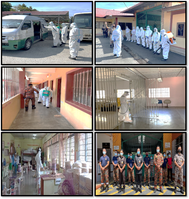10 Jun 2021 (Khamis) - Institusi Pemulihan Dadah Jelebu (IPDJ) telah bekerjasama dengan Balai Bomba dan Penyelamat Jelebu dalam menjayakan bantuan semburan pembasmi kuman (nyah cemar) di institusi ini. Turut hadir PKP Shahrom bin Mohamed Pengarah IPDJ dan Tuan Mohd Fazill bin Mohd Yunus Ketua Balai Bomba dan Penyelamat Jelebu. Operasi ini melibatkan seramai (09) orang anggota Balai Bomba dan Penyelamat Jelebu dan (3) orang anggota IPDJ. Semburan pembasmi kuman (nyah cemar) ini bagi membendung penularan Covid-19 dikalangan anggota dan penghuni. Sanitasi ini melibatkan Kenderaan Jabatan, Pejabat Pentadbiran, Blok Penempatan dan Bengkel-Bengkel Vokasional & Industri.