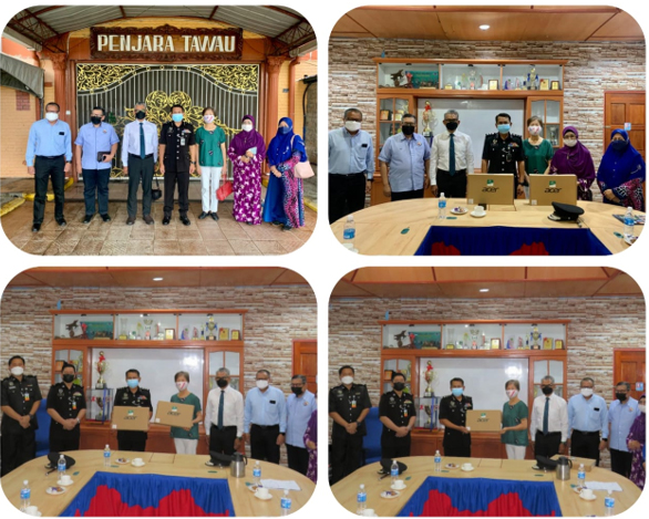 13.9.2021 (Isnin) bertempat di Bilik Mesyuarat Penjara Tawau telah berlangsung sesi penyerahan komputer riba Acer daripada Puan Lim Khoon Chin, Ahli Lembaga Hakim Pelawat Penjara Tawau kepada PKK Abd Rauf bin Lang Pasih, Pengarah Penjara Tawau. Sesi penyerahan telah disaksikan oleh TPP John Kindasan dan TPP Choimmber Tain serta ahli-ahli Lembaga Hakim Pelawat Penjara Tawau.