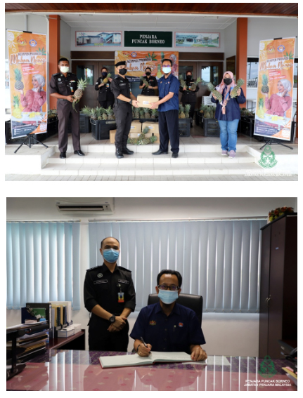 21 September 2021 - Lembaga Perindustrian Nanas Malaysia Negeri Sarawak telah mengadakan Program Promosi Kempen Nanas 2021 Peringkat Negeri Sarawak bersama Penjara Puncak Borneo. Tujuan program adalah sebagai menghargai warga kerja Penjara Puncak Borneo yang merupakan petugas barisan hadapan (Frontliners). Simbolik penyerahan buah nanas telah disampaikan oleh Encik Mohammad Suffian bin Sahmati, Pengarah Lembaga Perindustrian Nanas Malaysia Negeri Sarawak kepada PKP Hamdan Salleh bin Majin, Pengarah Penjara Puncak Borneo.