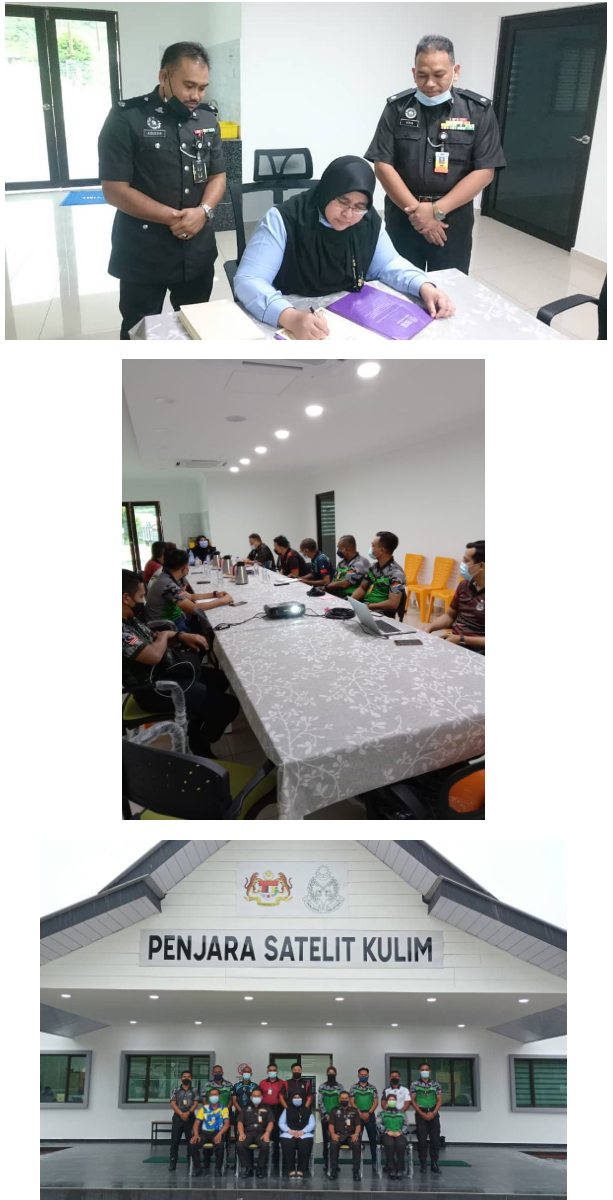 Pada 20 Oktober 2021 - Penjara Satelit Kulim, Kedah telah menerima kunjungan hormat daripada Pengarah Akademi Koreksional Malaysia (AKM), TKP Dr. Kamsiah Binti Kamin. Sesi perbincangan ringkas telah diadakan bersama Komandan Penjara Satelit Kulim, TPP Azman bin Husain, Timbalan Komandan Penjara Satelit Kulim, TPP Aizuddin bin Ismail dan anggota-anggota Penjara daripada Akademi Koreksional Malaysia yang bertugas di Penjara Satelit Kulim. Perbincangan berkisar berkenaan dengan keperluan kursus semasa bertugas oleh anggota-anggota penjara yang ditempatkan di PS Satelit bagi mencukupi keperluan kursus anggota penjara selama 3 hari. Pegawai penjara dan kakitangan yang hadir sama dari AKM adalah KIP Kartini binti Jafar, IP Mohamad Sofi bin Musa dan SJN Syahiza binti Mohd Noor. Seterusnya, diadakan sesi lawatan ke sekitar pejabat pentadbiran PS Kulim dan sesi bergambar bersama Komandan dan Timbalan Komandan.