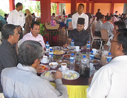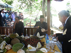 YB Dato' Seri bersama-sama dif-dif jemputan menikmati jamuan buah-buah yang disediakan |