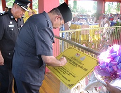 YB Dato' Seri menandatangani plak perasmian Restoran Terapung Penjara AGRO | YB Dato' Seri bersama beberapa Ahli Yang Berhormat Kerajaan Negeri Melaka |