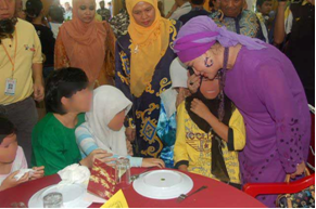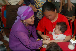 Y.Bhg Datin Seri melayan keletah bayi penghuni | Y.Bhg Datin Seri turut merasmikan majlis Pelancaran Industri Kraftangan dan Pemakanan PEWANISS di Galeri Penjara Kajang |
