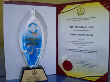 Majlis penyampaian hadiah telah disempurnakan oleh Y.A.B Menteri Besar Perak. PKK Tan Tien Heng, Pengarah Penjara Taiping hadir bagi menerima anugerah tersebut. Turut hadir dalam majlis tersebut adalah Exco-Exco Kerajaan Negeri, Setiausaha Kerajaan Negeri, ketua-ketua jabatan peringkat negeri dan persekutuan. Sekalung tahniah untuk semua yang terlibat.