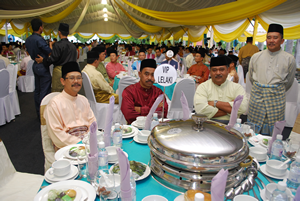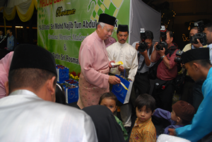 PUTRAJAYA 15 Sept. - Y.A.B Dato' Sri Mohd. Najib Tun Haji Abd. Razak, Perdana Menteri Malaysia dan Y.A.Bhg Datin Sri Rosmah Mansor telah menganjurkan majlis berbuka .... PUTRAJAYA 15 Sept. - Y.A.B Dato' Sri Mohd. Najib Tun Haji Abd. Razak, Perdana Menteri Malaysia dan Y.A.Bhg Datin Sri Rosmah Mansor telah menganjurkan majlis berbuka puasa untuk anggota-anggota beruniform di kediaman rasmi Sri Satria Putrajaya. Dalam majlis tersebut Y.A.B Perdana Menteri dan Y.A.Bhg Datin Sri telah sudi menyampaikan sumbangan raya kepada anak-anak yatim anggota penjara, polis dan tentera.