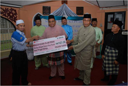 Lebih kurang jam 6.45 petang, tetamu jemputan Y.B. Mohammad Zahir bin Dato' Khalid telah menyampaikan replika cek wang zakat penghuni penjara berjumlah RM 1421.00 kepada wakil Jabatan Agama Negeri Perak.