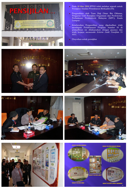Pengauditan oleh Tuan Hj. Omar bin Othman, Pengurus Unit Pensijilan Organisasi dan Profesional, Perbadanan Produktiviti Malaysia (MPC), Kuala Lumpur telah mendapati pelaksanaan Program Amalan 5S telah diimplementasikan dengan jayanya dan memenuhi ktiteria Audit Pensijilan 5S MPC.