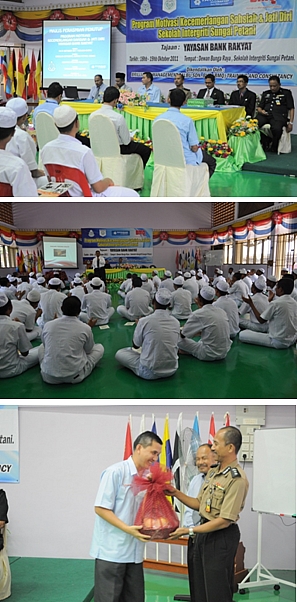 Program Motivasi Kecemerlangan Sahsiah Dan Jati Diri-Yayasan Bank Rakyat telah diadakan pada 18 dan 19 Oktober 2011 bertempat di Dewan Sekolah Integriti, Penjara Sungai Petani. Program yang berobjektifkan membina akhlak dan peribadi menawan, memahami tanggungjawab dan peribadi anak soleh dan juga untuk menyedari tanggungjawab dalam diri, keluarga, masyarakat dan Negara telah dihadiri oleh seramai 100 orang penghuni. Majlis perasmian penutupan program telah disempurnakan oleh PKP Mohd Muslih bin Mahmud Pengarah Penjara Sungai Petani. Majlis turut dihadiri oleh En. Mohd Mushin bin Ismail, Pengurus Perancangan Aktiviti Yayasan Bank Rakyat dan En. Azhar bin Abu Bakar, Penolong Pegawai Pendidikan Daerah Kuala Muda, Kedah.