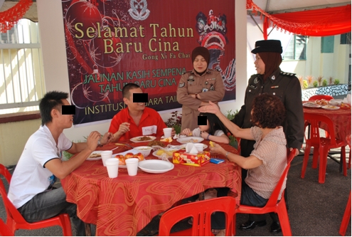 Beberapa aktiviti telah diatur bersempena dengan sambutan perayaan tahun baru cina. Bermula pada 23 Januari 2012 semua penghuni telah menerima sumbangan berupa makanan dan buah limau daripada Persatuan Buddha Taiping. Pada 24 Januari 2012 pula seramai (94) orang penghuni melibatkan (12) banduan sabitan dan (82) tahanan reman telah mengikuti program ceramah kerohanian dan upacara sembahyang yang dikendalikan oleh tiga orang guru agama daripada Persatuan Buddha Taiping . Pada 25 Januari 2012, institusi telah menganjurkan Program Jalinan Kasih di Perkarangan Unit Kawalan dan Pencegahan(UKP).