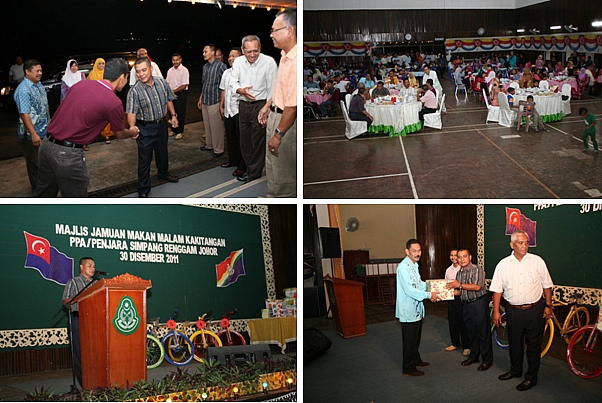 Pada 31 Disember 2011 Penjara Simpang Rengam, Johor telah mengadakan Majlis Jamuan Makan Malam bagi meraikan persaraan 3 kakitangan dan 9 pegawai yang bertukar. TPKj AB. Basir b. Mohamad telah merakamkan ucapan terima kasih kepada kakitangan yang bersara atas sumbangan semasa dalam perkhidmatan dengan Jabatan Penjara. Beliau juga berharap mereka dikurniakan kehidupan yang sihat selepas bersara. Sementara kepada kakitangan yang bertukar ke institusi lain beliau berharap dapat terus memberikan komitmen yang tinggi di tempat baru. Juadah makanan malam tersebut disediakan secara gotong royong mengikut blok kediaman kakitangan.