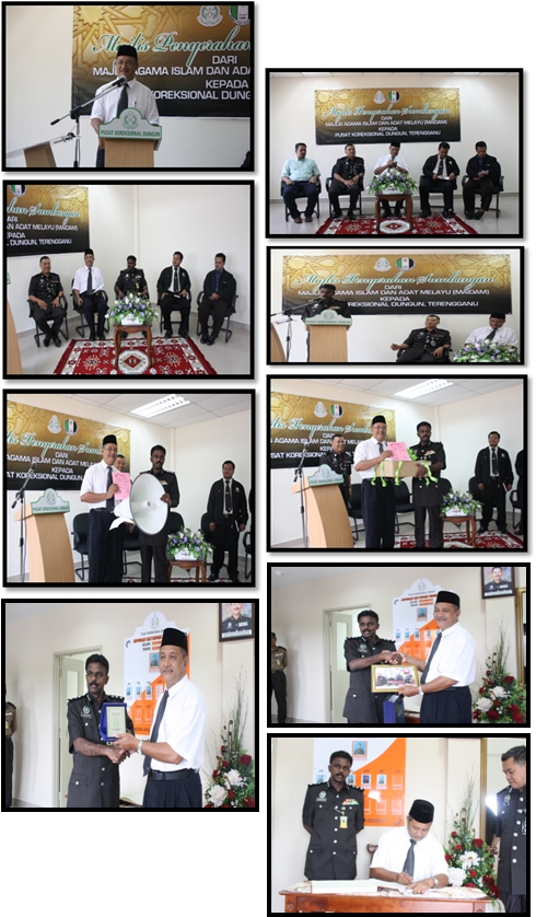 Pusat Koreksional Dungun , Terengganu telah menerima sumbangan bernilai sebanyak RM 10,353.00 yang di sumbangkan oleh Majlis Agama Islam Dan Adat Melayu (MAIDAM) Terengganu pada 11 JUN 2012.Majlis Sumbangan disampaikan oleh Ketua Pegawai Eksekutif MAIDAM iaitu Yang Berbahagia Tuan Hj Wan Harujan Bin Sulaiman kepada Yang Setia PKP Tuan S . Gunasegaran A/L Shammugam. Antara peralatan yang disumbangkan adalah seperti berikut :-