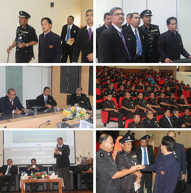 24 Oktober 2012 - Presiden CUEPACS YBhg. Dato' Hj. Omar bin Osman telah hadir ke Pusat Koreksional Perlis untuk menjayakan Majlis Perjumpaan Presiden Cuepacs bersama anggota Penjara Zon Utara. Majlis ini juga turut dihadiri oleh KPj YBhg. Dato' Alzafry Mohamed Alnassif bin Mohamed Adahan,Pengarah Dasar Kepenjaraan , TKPj Hj Ahmad Faudzi bin Hj Awang, Pengerusi Persatuan Pegawai Penjara (POA), PKP Mat Johir bin Asin @ Hashim Pengarah Pusat Koreksional Perlis, Pengarah-Pengarah Institusi Zon Utara dan Pengarah-Pengarah Parol Negeri Zon Utara.