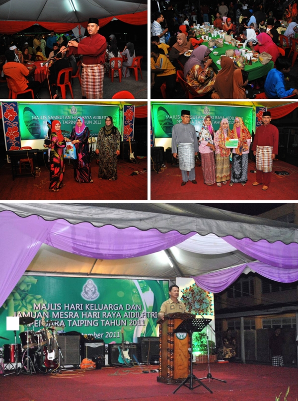 Pada 8 September 2012 bersamaan 21 Syawal 1433H, Penjara Taiping telah mengadakan Majlis Malam Mesra Aidilfitri Penjara Taiping. Majlis tersebut telah di adakan di Perkarangan tempat letak kereta Penjara Taiping. Majlis tersebut telah di hadiri oleh ahli keluarga kakitangan serta masyarakat setempat. Program tersebut telah berlangsung dalam suasana riang gembira. Majlis telah dihiburkan dengan Band Taming Sari Penjara Taiping serta dimeriahkan dengan penyampaian Duit Raya kepada kanak-kanak dan juga cabutan bertuah. Atucara program ini telah berjalan lancar tanpa sebarang masalah.