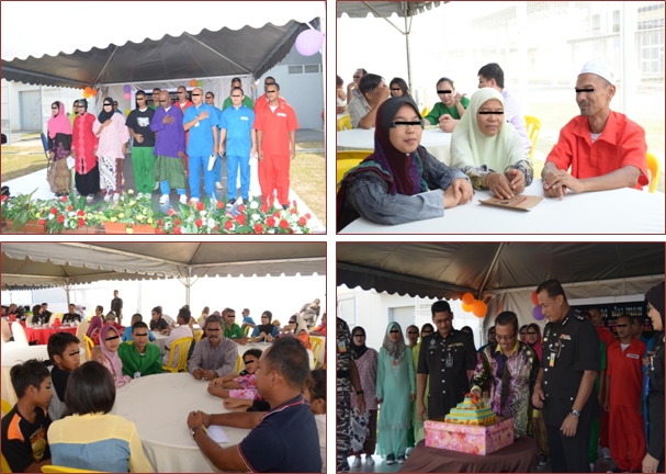 20 Jun 2013 Unit Program Pembangunan Insan ( PPI ) telah mengadakan Program Jalinan Kasih sambutan Hari Ibu dan Bapa peringkat penghuni Penjara Sungai Udang yang diadakan di perkarangan Unit Pemulihan . Majlis dirasmikan oleh YB Datuk Hj. Yaakub bin Md.Amin, Pengerusi Majlis Agama Islam Melaka serta turut dihadiri bersama PKP M.Zainuddin bin Ibrahim, Timbalan Pengarah Penjara Sungai Udang. Seramai 15 orang penghuni menyertai program ini. Majlis dimeriahkan dengan beberapa acara persembahan oleh penghuni serta majlis pemotongan pulut kuning . Pelaksanaan program amat bermakna bagi penghuni kerana ianya dapat mengeratkan hubungan kasih sayang kekeluargaan di antara keluarga penghuni.