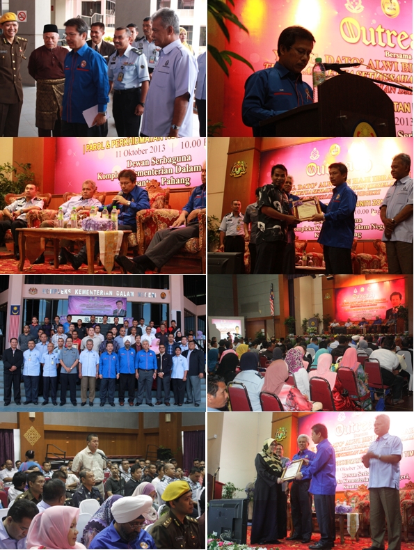 Pejabat Parol dan Perkhidmatan Komuniti Negeri Pahang, telah mengelolakan Program Outreach Bersama Timbalan Setiausaha Kanan (Keselamatan) Kementerian Dalam Negeri, Peringkat Zon Timur pada 11 Oktober 2013 (Jumaat) bertempat di Dewan Serbaguna Kompleks Kementerian Dalam Negeri, Bandar Indera Mahkota, Kuantan.