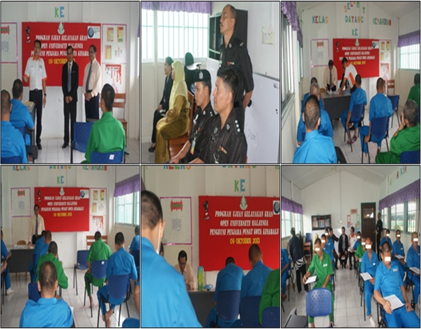 Rabu : 09 Oktober 2013, Ujian Kelayakan Khas (Flexible Entry Test) Open Universiti Malaysia (OUM) melibatkan 15 orang penghuni yang akan melanjutkan pelajaran ke peringkat Diploma dan Sarjana Muda di OUM telah diadakan di Sekolah Integriti Kota Kinabalu. Encik Lamjin bin Atoh, Pengarah Open Universiti Malaysia (OUM) Sabah, bersama dua orang kakitangan OUM turut hadir mengendalikan ujian tersebut dengan dibantu oleh Pn Nasimah binti Mohamed Salleh, Penyelia Sekolah Integriti Kota Kinabalu bersama Cikgu Daniel Nicholas Yap, Penyelaras OUM bagi Penjara Pusat Kota Kinabalu.