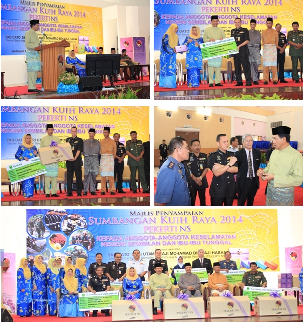 11 Julai 2014, Jumaat - Majlis Penyampaian Sumbangan Kuih Raya 2014 kepada Anggota Pasukan Keselamatan, Negeri Sembilan telah diadakan di Dewan PEKERTI, Seremban. Sumbangan kuih raya telah disampaikan oleh YAB Dato? Seri Utama Haji Mohamad bin Haji Hasan, Menteri Besar Negeri Sembilan. Pengarah Penjara Seremban, PKP Hafidz bin Othman telah menerima sumbangan tersebut. Penyampaian sumbangan kuih raya ini bertujuan bagi menghargai komitmen dan jasa pegawai-pegawai beruniform yang bertugas sempena sambutan Hari Raya Aidilfitri.