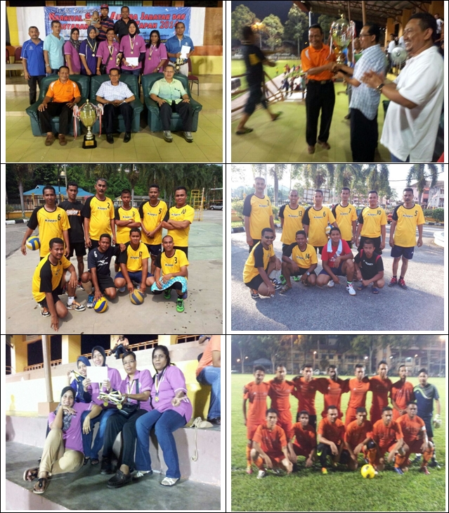 Tapah - 14 Jun 2014 (Sabtu) telah berlangsung Kejohanan Sukan Antara Jabatan Kerajaan Dan Masyarakat Setempat Daerah Batang Padang bertempat di Stadium Mini Tapah, Perak. Sebanyak empat (4) acara sukan telah dipertandingkan iaitu bolasepak, bola tampar, bola jaring dan ping pong. Kejohanan tersebut telah disertai oleh 6 jabatan kerajaan dan 2 DUN iaitu Penjara Tapah, IPK Tapah, Jabatan Perhutanan Perak Tengah, Majlis Daerah dan Tanah Tapah, Majlis Daerah dan Tanah Slim River, DUN Ayer Kuning dan DUN Batu Melintang. Pada Kejohanan tersebut Penjara Tapah telah mencapai keputusan seperti berikut : -