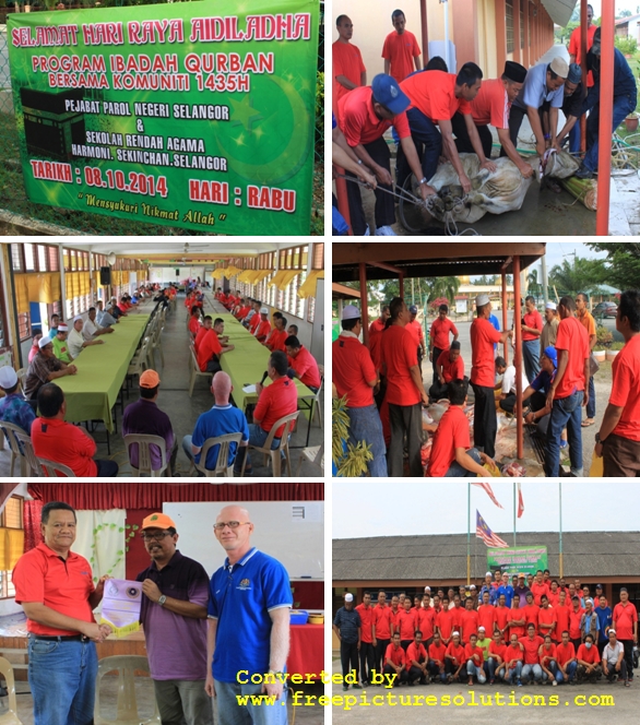 8 Oktober 2014, Parol Negeri Selangor telah menganjurkan Program Ibadah Korban ODP dengan kerjasama Sekolah Agama Harmoni, Sekincan Selangor. Program ini dihadiri seramai 30 anggota , 25 ODP seluruh Negeri Selangor ,Kakitangan Sekolah Agama Harmoni serta ahli masyarakat setempat. Program ini turut dihadiri oleh PP Muhammad Nazri Bin Nasrudin, Pengarah Parol Negeri Selangor. Program diakhiri dengan majlis tahlil dan bacaan doa selamat seterusnya jamuan makan tengahari.