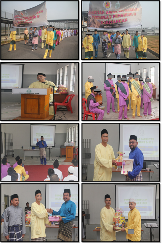 Program sambutan Maal Hijrah kali ini turut dimeriahkan dengan penganugerahan tokoh Maal Hijrah bagi kakitangan dan penghuni. WP19215 Hamizi bin Bahamat telah dianugerahkan tokoh Maal Hijrah 1437H peringkat kakitangan manakala penghuni 14527 Aminuddin bin Roslan telah dianugerahkan tokoh Maal Hijrah 1437H peringkat penghuni. Program Sambutan Maal Hijrah 1437H kali ini turut diserikan dengan kehadiran PKP Arzaee bin Abdullah, Pengarah Pusat Koreksional Jasin dan TPP Aswari bin Che Ibrahim, Ketua Bahagian Pengurusan Banduan.