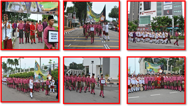 Perarakan keluar kontijen Penjara dari stadium diiringi oleh pasukan kompang dan laungan selawat ke atas Junjungan Besar Nabi Muhammad S..A.W yang diketuai oleh Sarjan Mejar Penjara Mo?ed bin Salleh. Perarakan bermula daripada Padang Stadium Hang Tuah Melaka dan berakhir di Perkarangan Masjid Al-Azim Bukit Palah, Melaka.